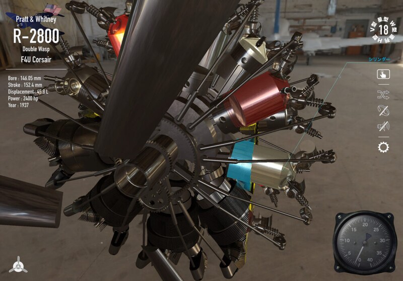 栄二一型や、マーリンエンジンを再現した飛行機エンジンアプリTrans4motor Sもある