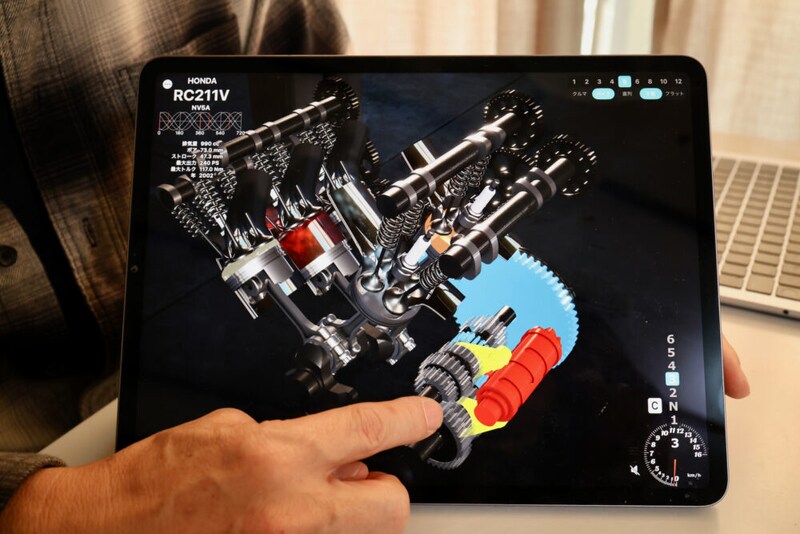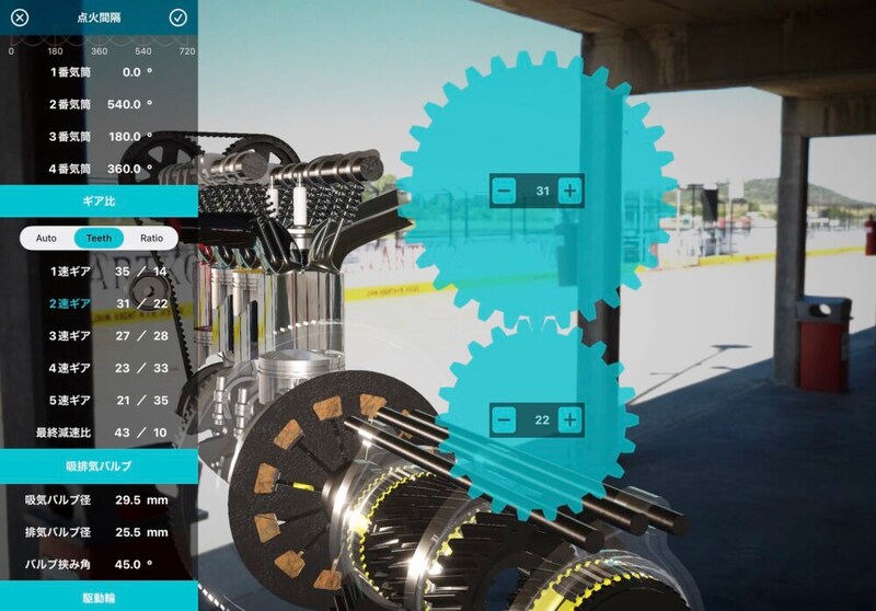 ギア比にいたっては、当然のことながらワークスマシンのギア比など絶対に秘密なはずだが、バイク雑誌に写っていた分解写真のギアパーツの写真を拡大し、歯数を数えて反映したという。このアプリをホンダのエンジニアの方が見たら、驚かれるのではないだろうか?