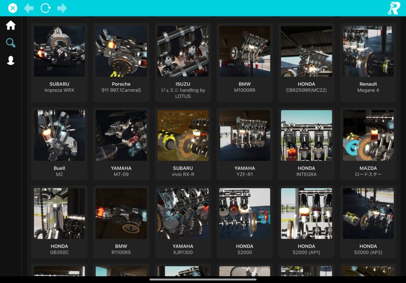 また、『手本』として用意されている数台のエンジンとは別に、自分で作ったエンジンを『engines』というエンジン共有サイトにアップロードして共有することもできる。現時点でも、HONDA CBR250RRや、YAMAHA MT-09(3気筒)、Renault Megane4 RS Trophy、SUBARU vivio RX-R……など、おそらくはご自身が乗ってるバイクやクルマのエンジンだったり、憧れのエンジンが作られてアップロードされている(ただし、これら非公式のものは、おおまかな形式以外のギア比などがどこまで再現されているかは定かではない)。