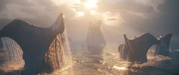“アバター“として人類が潜入した理想郷パンドラ。美しい空にはお馴染みの翼竜・イクランやクラゲのようなひらひらと優艶な新しいクリーチャーが飛び交い、前作に引き続き雄大なクジラのような海のクリーチャー・トゥルクンたちが一斉に水面に現れるなど、偉大なパンドラの自然は健在だが、「お前が思う以上に、この星は未知の世界だ」とジェイクが語るように、そこには誰も未だ見ぬ神秘の世界が広がっている。