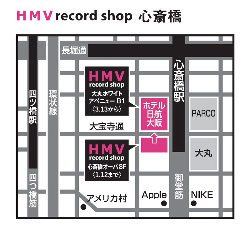 「HMV&BOOKS SHINSAIBASHI」「HMV record shop 心斎橋」