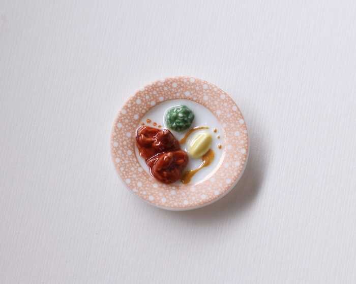 フランスの工房で一つ一つ手作りされ、ポテトピュレやハーブ、お皿の細部まで再現。