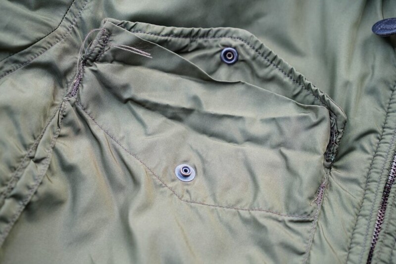 このWEPジャケットは、同じく海軍の名作フライトジャケットである「G-1」と並行して支給されていた。G-1が中間気候帯で使われていたことに対して、当ジャケットはウィンター用に位置づけされている。シェルには50年代より空軍のフライトジャケットでも主流となったナイロンを配し、裏にはコットンライニングを使用。防寒用のフライトスーツの上からレイヤードすることを前提としているので、大きなワイドシルエットで、着丈が短いシルエットになっている。内側にWEPジャケットとセットアップで作られたトラウザー用のアタッチメントが付いているのもポイントだ。