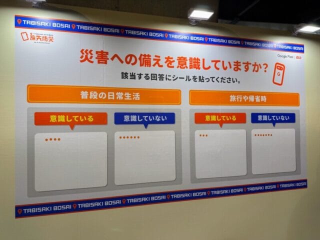 こうした課題に対応するため、“いつものスマホで、もしもに備える”をテーマに、身近なスマホで手軽に備えることができる防災対策の紹介や、旅への防災意識をチェックできる体験場『旅先防災案内所』解説。