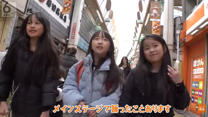 実はこの3人、一緒にダンスを習っていて、今から千林のダンススクールでレッスンがあるそう。聞けば、こちらは人気アイドルグループ・FRUITS ZIPPERのメンバーも卒業したというダンスアカデミー。大阪・関西万博のメインステージで踊った経験もある彼女たちに将来の夢をたずねると、「アイドルです」と目を輝かせて答えてくれました。
