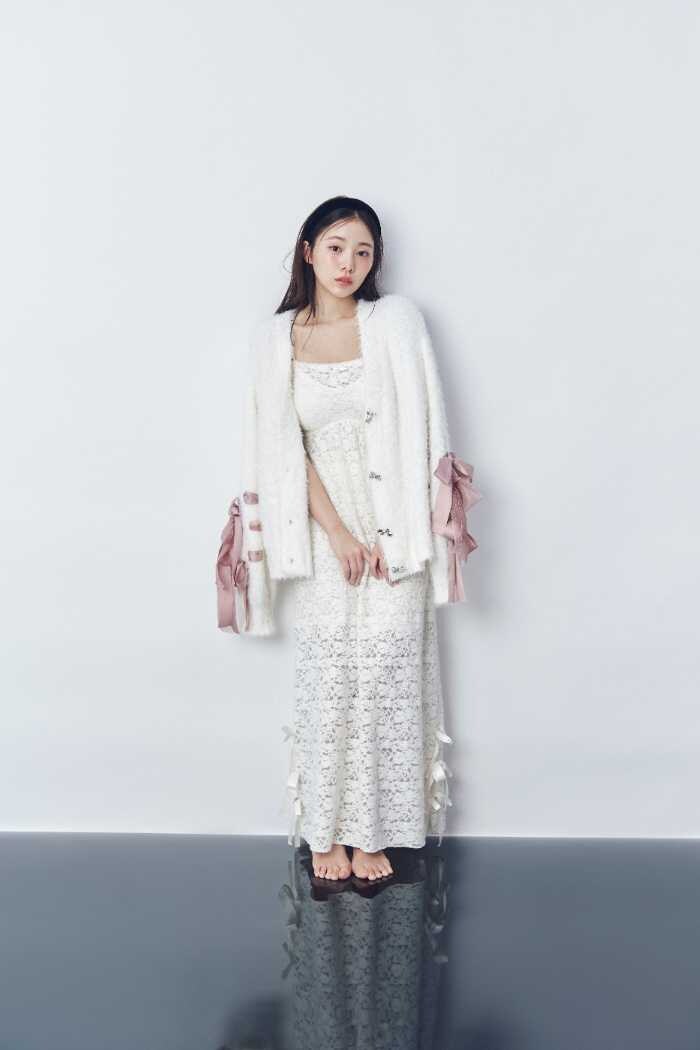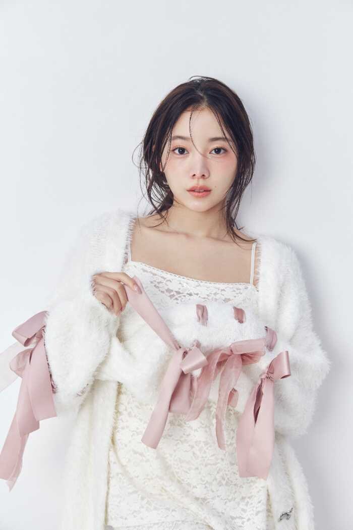 【Halloween】ニットカーディガン:カラー WHT/BLK、サイズF、価格10,780円。リボン使いが華やか♪
