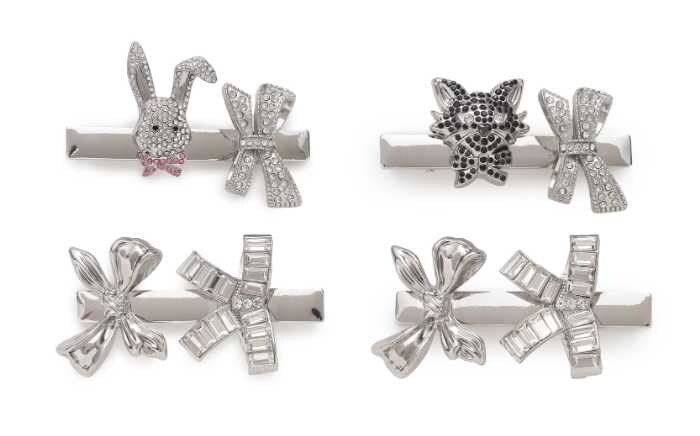 【Halloween】ヘアピン:カラーA(黒猫)/B(白ウサギ)、サイズF、価格4,840円。キラキラのストーンがアクセント。