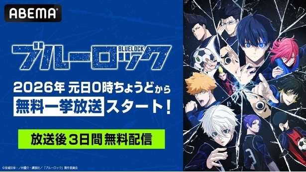 ABEMAが、サッカーアニメ『ブルーロック』シリーズのTVアニメ全話を2026年1月1日(木)に無料一挙放送することがわかった。