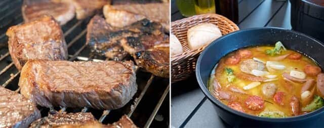 ▲「甲州牛」をメインにしたプレミアムBBQ <画像提供:グランピングB&V富士.河口湖>