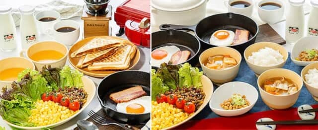 ▲朝食のセットは2種類からチョイス <画像提供:グランピングB&V富士.河口湖>