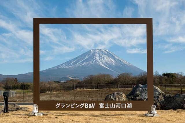 管理棟の近くにある共有広場には富士山をバックに記念写真が撮れる大きなフォトフレームを設置。季節や太陽の向き、朝や午後遅くの赤富士など、富士山のさまざまな表情と共に想い出を作れます。
