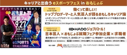特別企画「HADOジョブバトル」では、吉本芸人・企業・参加者がそれぞれチームを組み、「HADO」で白熱のバトルを展開。楽しみながら、コミュニケーション能力や判断力、チームワークといった“就活力”を自然に高めることができます。さらに、eスポーツトッププロゲーマーと人気芸人による特別講演では、働くことの楽しさやキャリアの多様性が語られ、自身の適性や興味を新たな角度から発見できる機会となります。