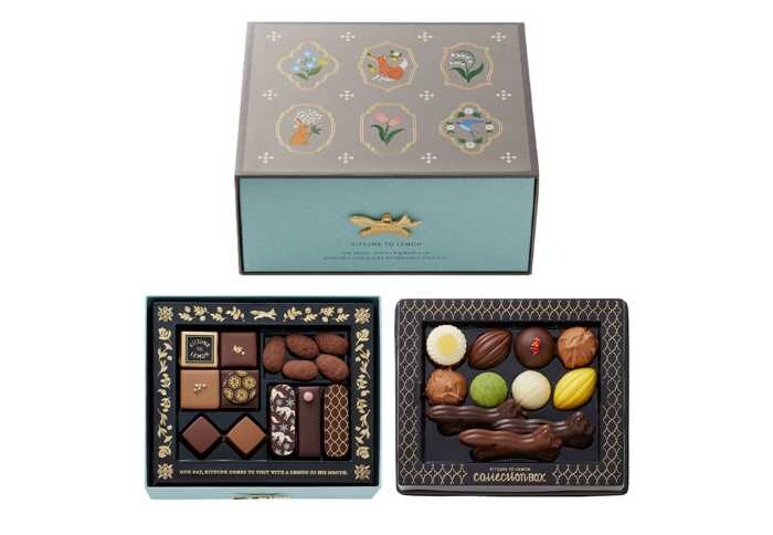 キツネ型チャーム付き引き出しボックスに、「キツネとレモン」の全物語チョコを2段で詰めたスペシャルアソート。西淑氏のイラストで絵本のような世界観を楽しめます。