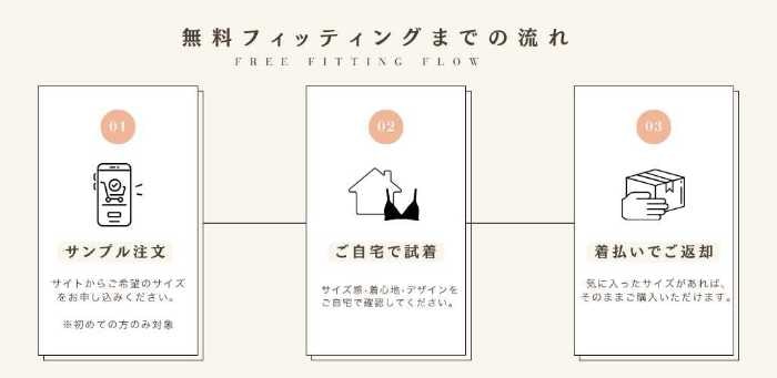 こうした声を受け、AndBraは初回限定で2サイズを自宅で無料試着できるセルフフィッティングサービスを開始。