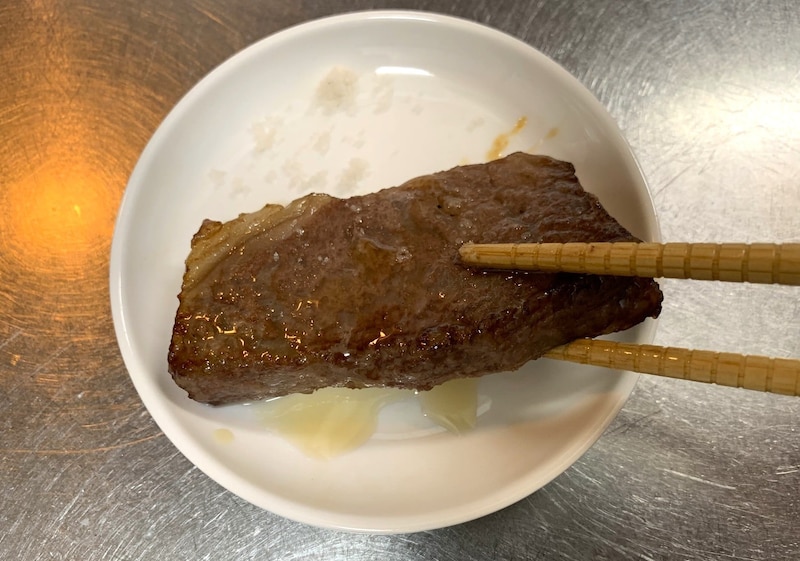 脂の甘みがすんごいの! 赤身の旨さと脂の甘みのあるしっとりしたコクがミルフィーユのように交互に襲ってきて、噛みしめるごとに脳汁ブシャーってなります。