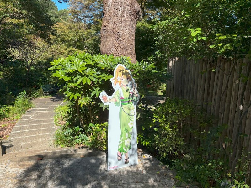 館内着に着替えたら、ぜひ訪れてほしいのが「豊島園 庭の湯」自慢の日本庭園だ。こちらは10:00~22:30まで自由に散策できる場所(荒天時には閉鎖)で、じつはこちらにもユニ、チエル、クロエのパネルが設置されている。
