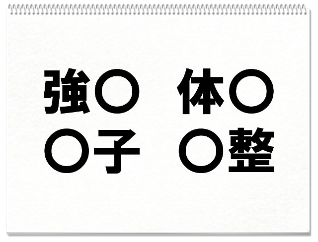 ひとつふたつくらいならすぐに思い浮かぶのですが、3つ4つだとさすがにすぐには思い浮かびませんね。このタイプの問題は、とにかくひらめいた言葉をドンドン当てはめてみることです。