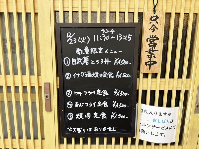 店内に入り、カウンター席に着席。店頭に掲げられていたランチメニューのほか、店内のボードに書かれている一品料理も注文可能。地域住民と思われるお客さんたちがどんどん入ってくる。焼肉定食を注文するお客さん多い印象。そういうのも人気あるのか。