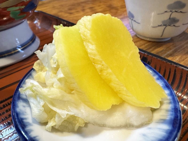 筆者が食べた刺身定食は、刺身盛り合わせ、つま、きゅうり、味噌大根、白菜漬け、たくあん、みそ汁、ご飯のセット。美しく盛られた刺身盛り合わせ。盛りが美しいだけでなく、刺身そのものが輝くように美しい。ピュアすぎる刺身の数々。