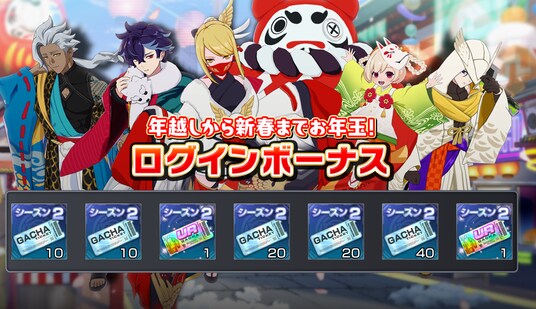 2025年12月29日(月)メンテナンス終了後より、ゲーム内イベント「年末年始ログインボーナス」を実施しております。本イベントにおきましては、実施期間中にログインするだけでガチャチケットを最大で100枚、さらには貴重なUR衣装確定チケットを最大で2枚(いずれもシーズン2用)を獲得可能です。