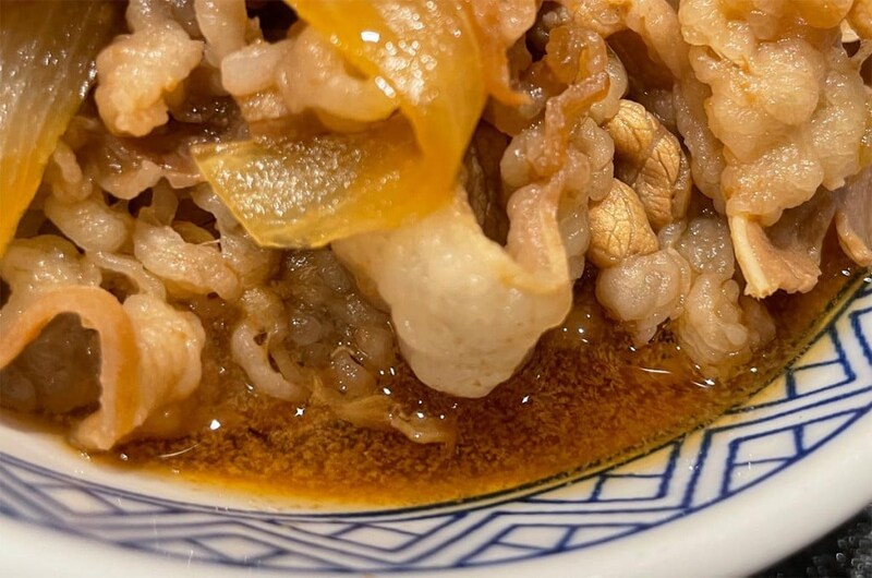 ツユダクにすると、ノーマルの牛丼よりもジューシーになり、味が濃いめに。