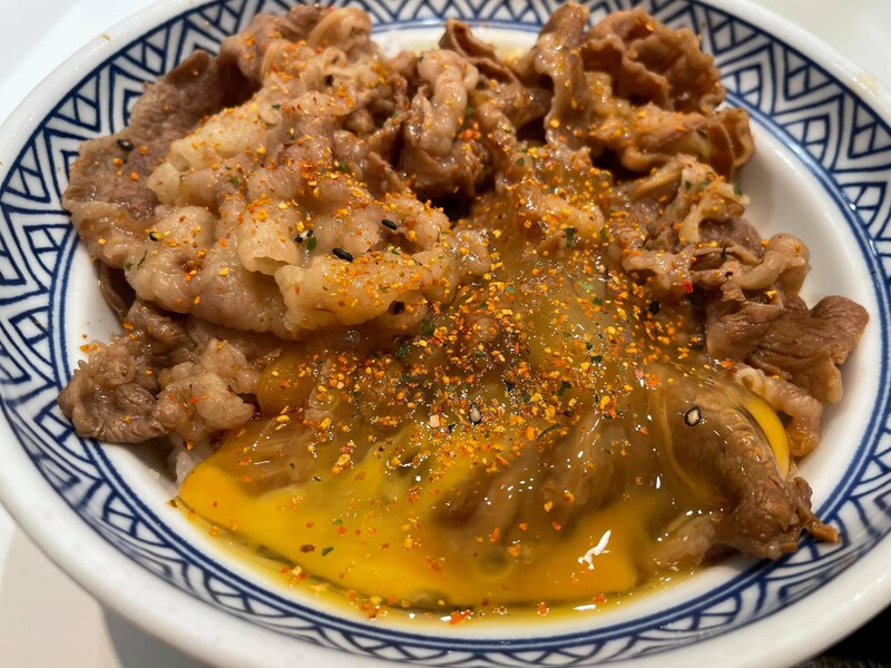 牛丼ツユナシ生卵に醤油をかけても絶品ですよ。