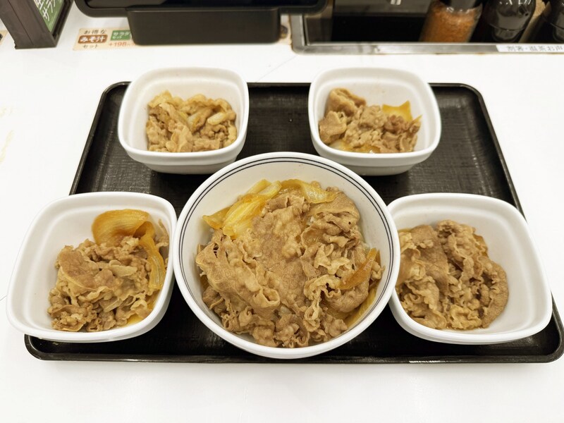 ひとつは「牛丼小盛に肉だく4皿プラス」です。