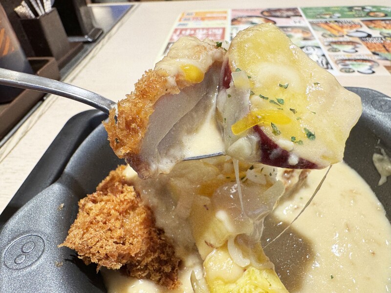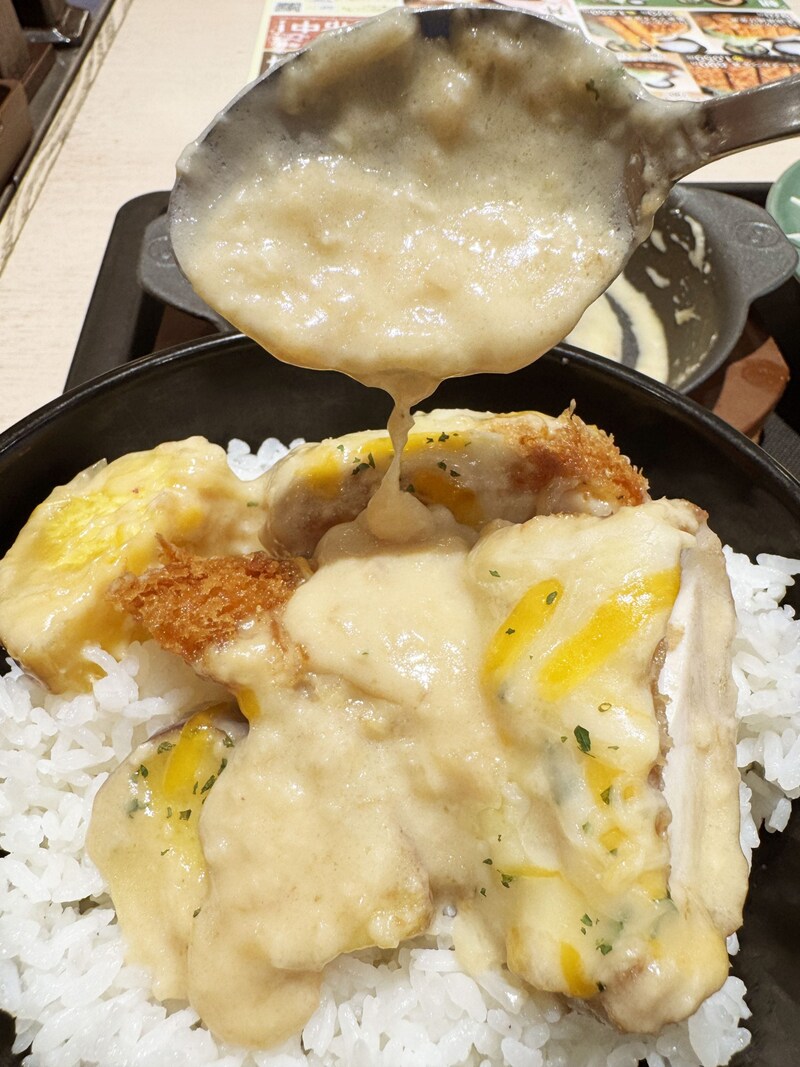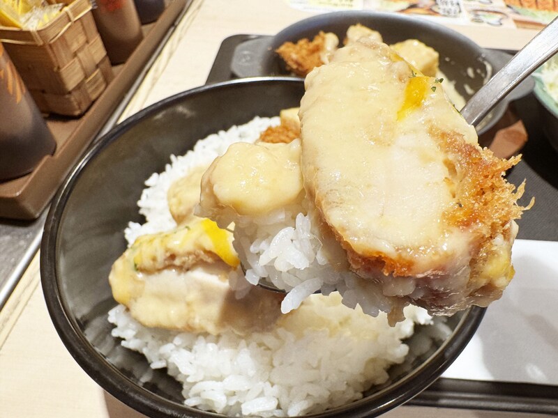 チキンカツの香ばしさに、チーズの薫りとコクも相まって、ライスがご馳走化。