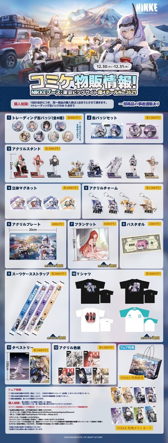 また、最新バージョンの実装とあわせて、『勝利の女神:NIKKE』は本日より開催される「コミックマーケット107(C107)」に出展中です。東京ビッグサイト南4ホール「No.2621」に展開される公式ブースでは、「焚き火のぬくもりと、初日の出の暉き」をテーマにした特設展示空間が登場。年末の冬コミならではの世界観演出のもと、ニケたちと過ごす特別なひとときをお楽しみいただけます。