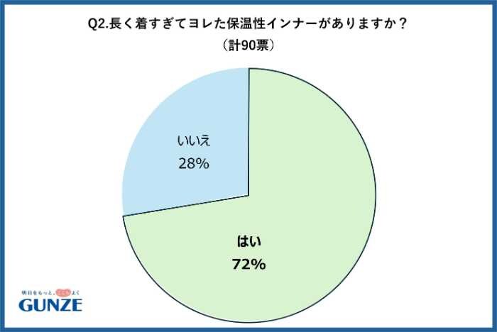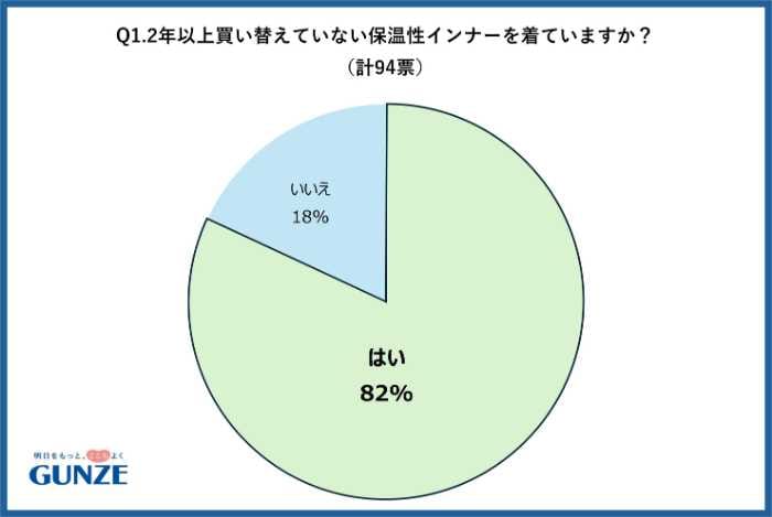 グンゼ公式Xで実施されたアンケートでは、「2年以上買い替えていない保温性インナーを着ている」と答えた人が82%という結果に。