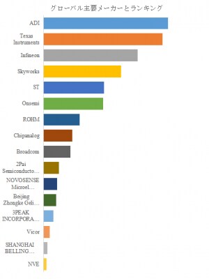 LP Informationのトップ企業研究センターによると、アイソレータチップ市場は、ADI、Texas Instruments、Infineon、Skyworks、ST、Onsemi、ROHM、Chipanalog、Broadcom、2Pai Semiconductorなどのグローバル企業が牽引している。2024年時点で、トップ5企業は売上の観点から約58%、トップ10企業では約76%の市場シェアを占めており、市場は寡占的な構造を示している。主要企業は、高性能・小型化・低消費電力設計を軸に技術優位性を確立しており、製品の信頼性向上や応用分野拡大に大きく寄与している。また、ブランド力やグローバル販売ネットワークの強化により、市場シェア維持と新規市場開拓の両面で競争優位を確保している。