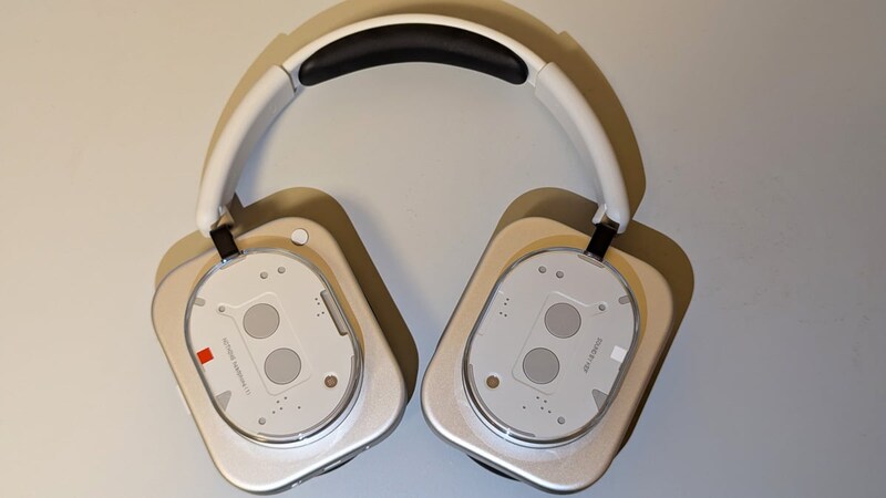 Headphone (1)は、内部のパーツが見える透明デザインを採用し、アルミ製で角型のイヤーカップが印象に残る外観。街中で見かけてもそれだと分かる主張はありながら、どこかレトロで懐かしい雰囲気が親しみやすさを感じさせます。本体カラーはレビューしたホワイトとブラックの2色。