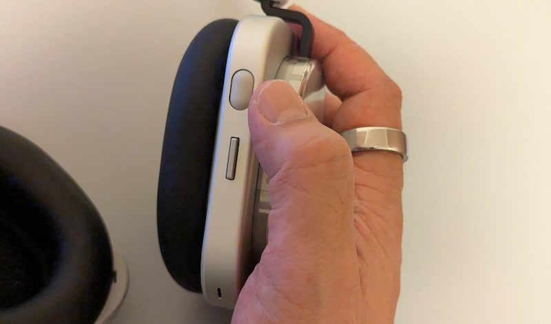 ここからは、各製品の独自機能にフォーカスして見ていきましょう。まずHeadphone (1)は、右耳のイヤーカップに物理キーを搭載し、タッチ操作ではなくキーのみで操作するのが大きな特徴。水平方向にジョグダイヤルのように回転させたり押し込んで操作する「ローラー」は、回転でボリューム調節、クリックで再生・一時停止、長押しでANCのモードを切り替えられます。ローラーの下にある「パドル」は、前後にカチカチと倒して操作する物理キーで、曲送りや着信操作に使用します。