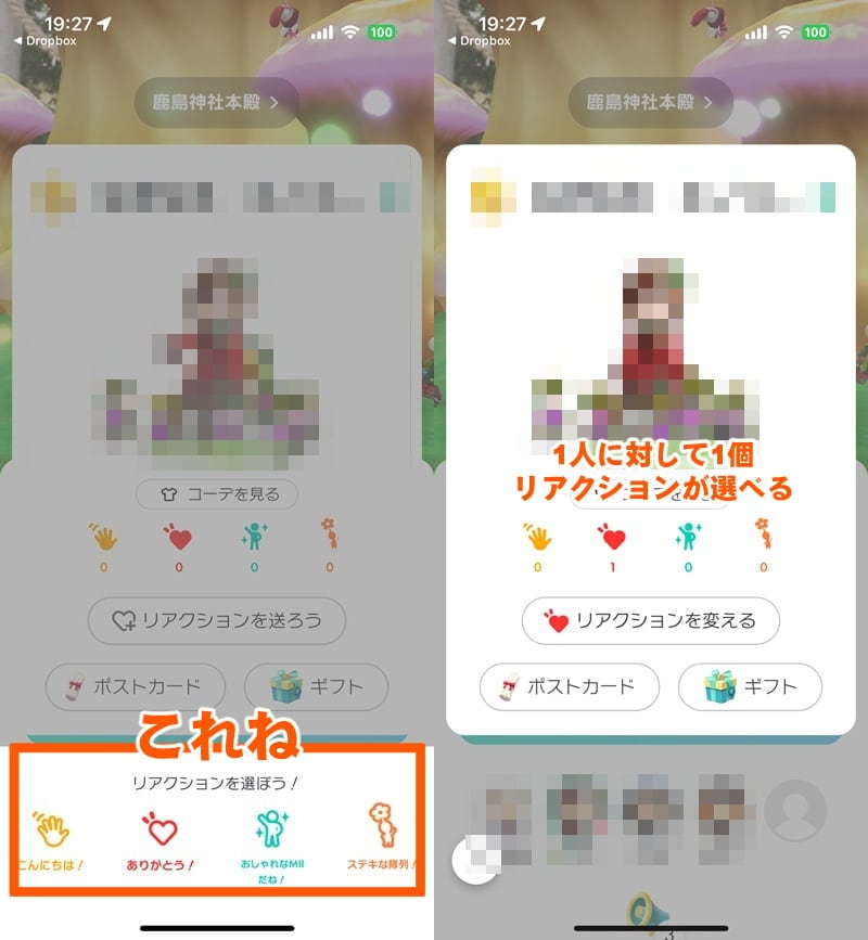 一方、筆者は必ずフレンドたちにリアクションを送るタイプ。