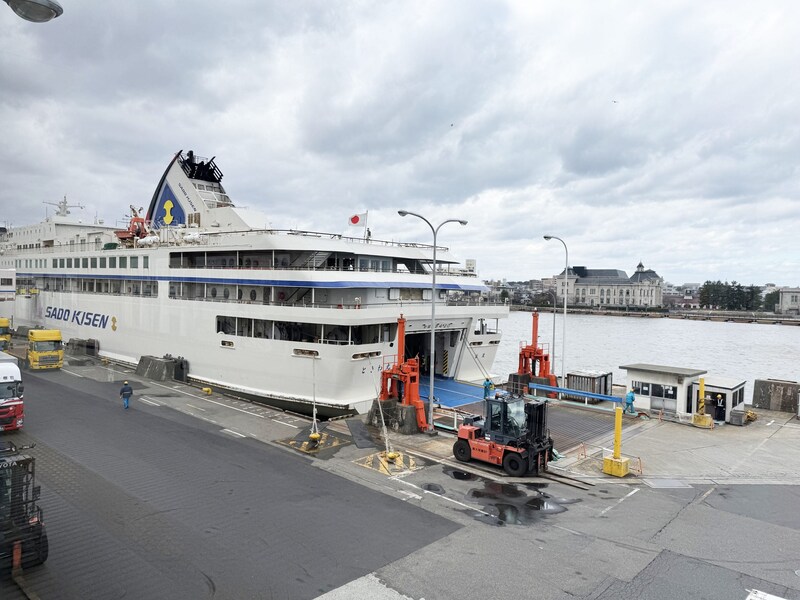 新潟港・佐渡汽船ターミナルは、JR新潟駅から徒歩で行くこともできるが、約30分かかる。バスでは約20分、タクシーやクルマでは約10分で行くことが可能。クルマで行くならば、新潟港の駐車場にとめることもできる。