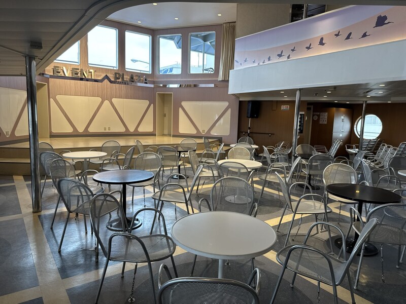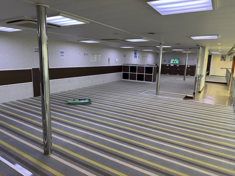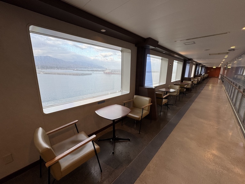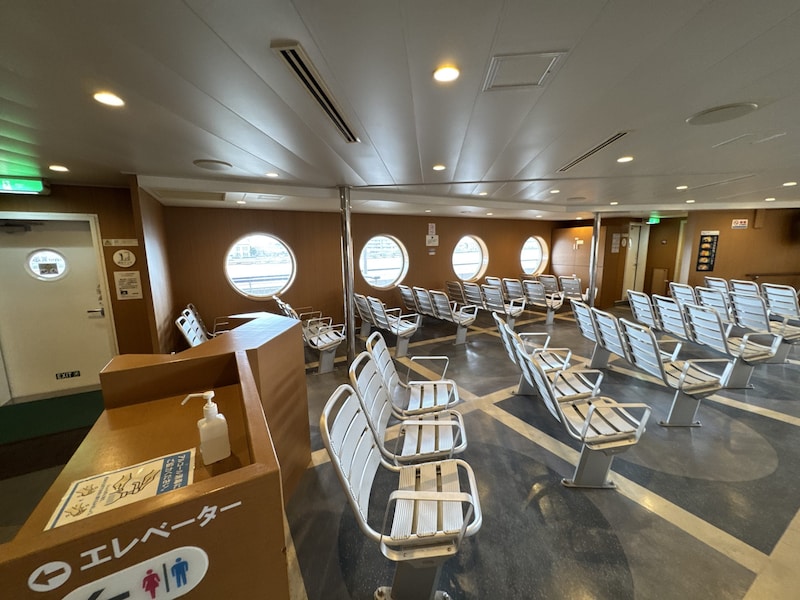 しかもカーフェリーの船内は快適で、椅子席、カーペット席、そして食堂など設備が充実。
