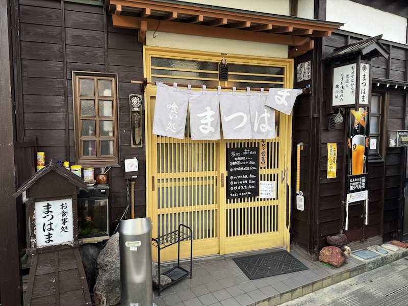 南線で行く場合、両津港佐渡汽船のバス停から乗り、八幡町のバス停で小木線に乗り換え、小木のバス停まで移動する。本線で行く場合、佐渡市両津支所のバス停から乗り、河原田諏訪町のバス停で小木線に乗り換え、小木のバス停まで移動する。そこから徒歩4分ほどでまつはまだ。