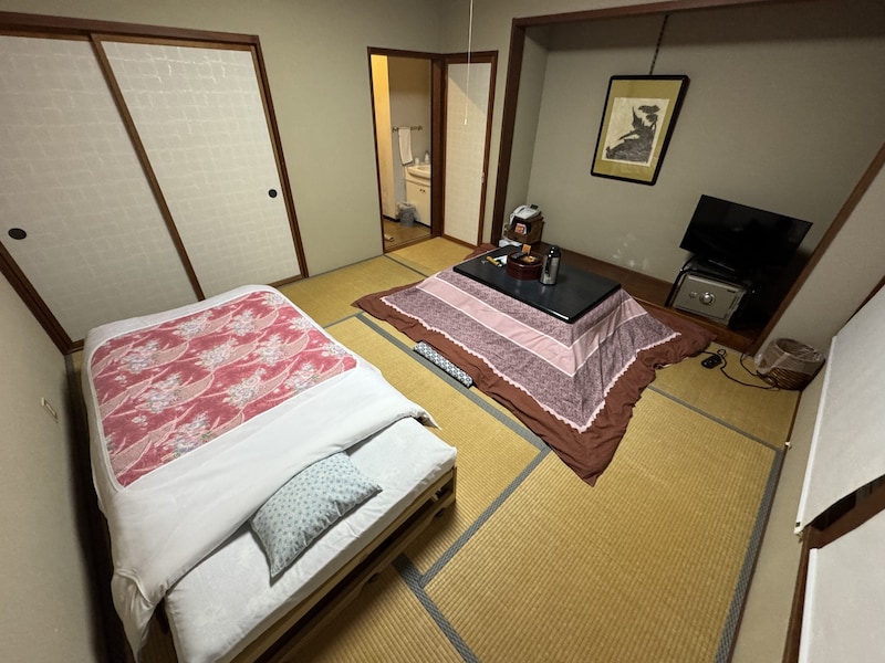まつはまから徒歩10分ほどの場所にある「小木温泉旅館かもめ荘」(新潟県佐渡市小木町11-7)は、温泉に入りつつ、快適で広い和室でくつろげる癒やしの温泉宿だ。