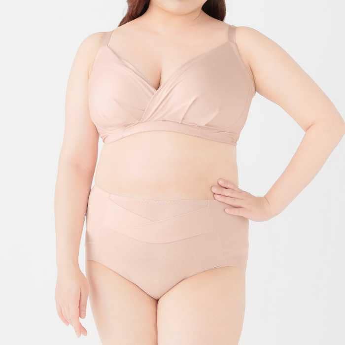 セットで着用できる「ぽちゃラクすっきりペアショーツ」も、体型悩みに配慮した設計。後ろ足口に立体的な切り替えを入れることで、お尻のお肉がはみ出しにくく、安心感のある履き心地を叶えます。