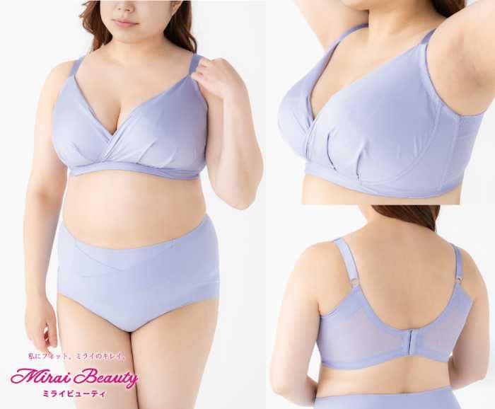 「ぽちゃラクすっきりノンワイヤーブラ」は、2XL・3XL・4XLの3サイズ展開。A90からG95まで幅広く対応し、体形に合わせたフィット感を実現しています。
