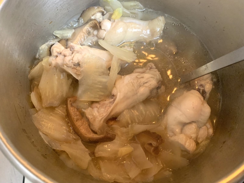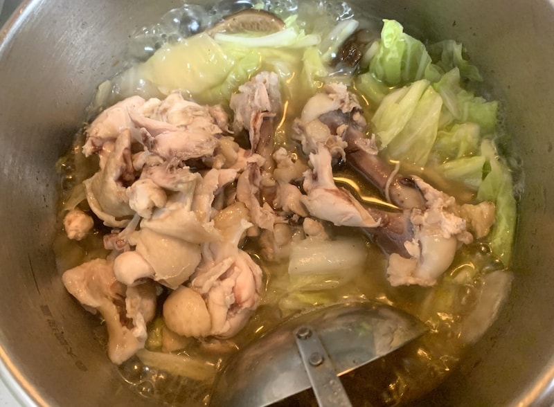 骨からすごく良い出汁が取れるので、お肉と一緒に骨も鍋に戻します。