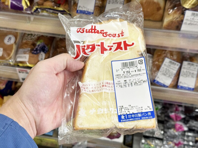 バタートーストは佐渡島の中川製パン所(ナカガワ製パン)が作っているパンで、佐渡島のコンビニやスーパーマーケット、商店など、あらゆるところで販売されています。