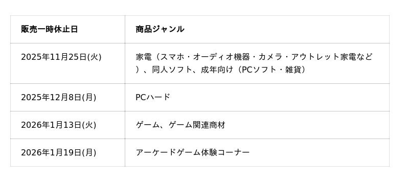 「駿河屋 本店 ゲーム館」のオープン準備に伴い、既存の「駿河屋 本店 駿河屋ビル」における売り場の販売開始、および新店への移転準備のため一部商品の販売を一時休止いたします。