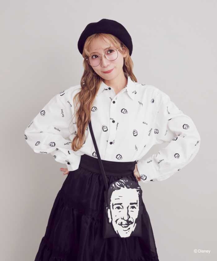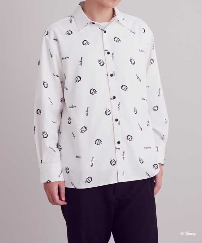 「ウォルト・ディズニー/総柄シャツ」11,900円は、フェイスアートとシグネチャーロゴをプリントした一枚。*ユニセックス仕様のため、リンクコーデも楽しめます。