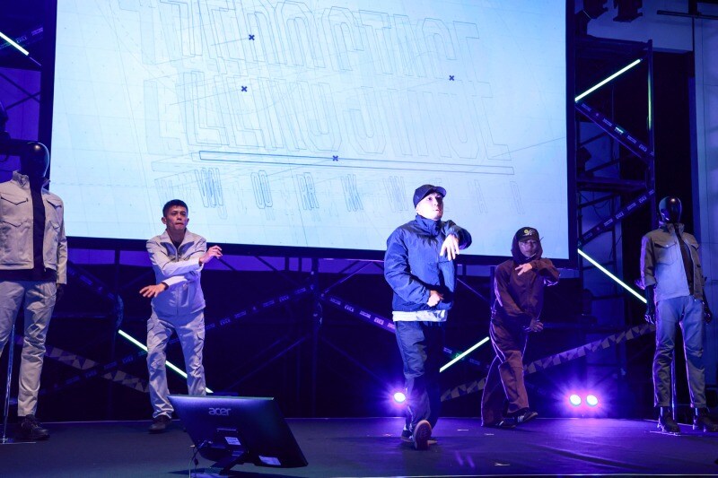 オープニングアクトを務めたブレイクダンスチーム「FOUND NATION」の見事なブレイクダンスによって会場が温められました。また、ダンスメンバー3人は「ZERO-STAGE」新作のジャケットやパンツを着用して軽々に踊っていました。
