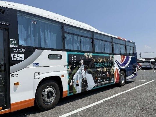 コラボを記念し、展覧会告知の刀剣男士 松井江リムジンバスが11月24日(月・祝)まで運行しています。