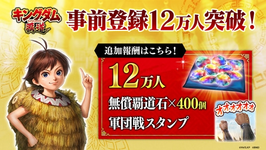 皆様のおかげで、「キングダム 覇道」の事前登録者数が12万人を突破!