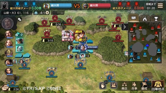 プレイヤーは1人の将軍となり、アニメに登場する個性豊かな武将たちを活かして戦場を攻略していきます。同じ軍団で共に戦うプレイヤーたちと連携しながら進軍し、軍団の拡大を目指しましょう!