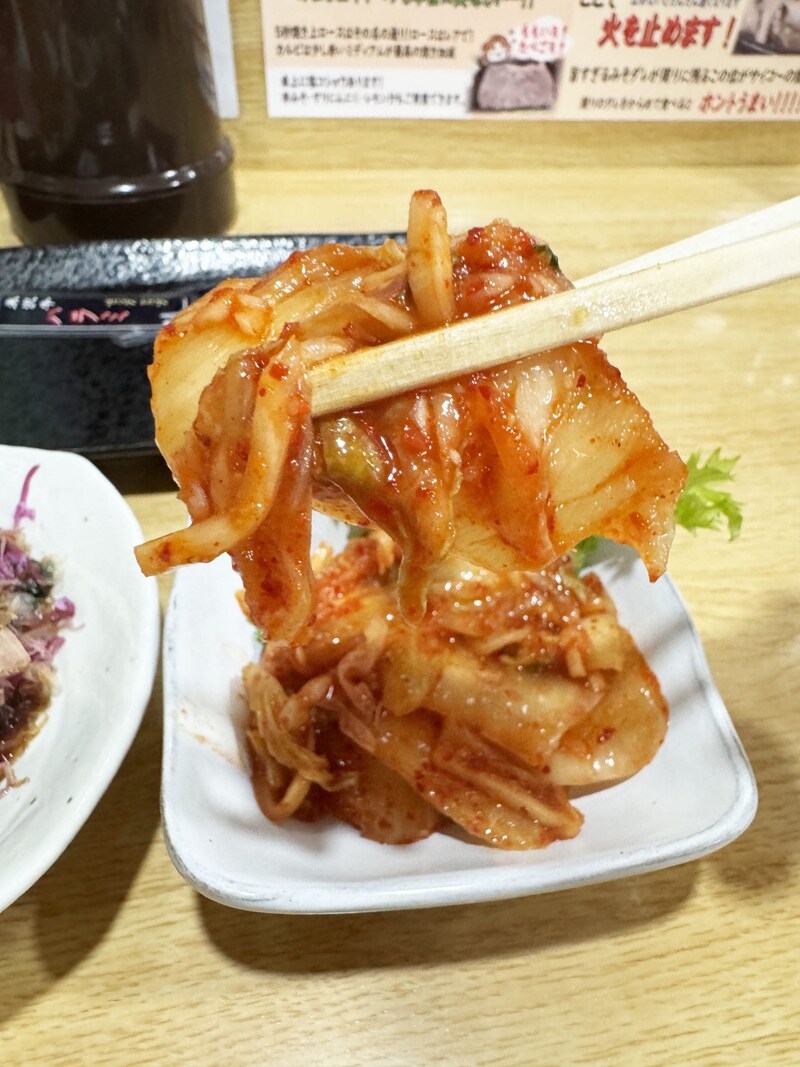 焼肉を食べつつキムチを食べれば、肉汁の旨味を辛味によって強調してくれる。たまらない相乗効果。