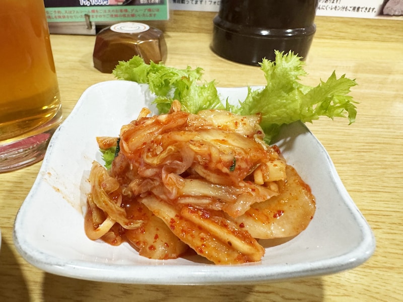 キムチは、酸味が穏やかで旨味が深く美味。これは焼肉の旨味を邪魔しない、打ち消さない、むしろ旨味を際立たせるキムチ。
